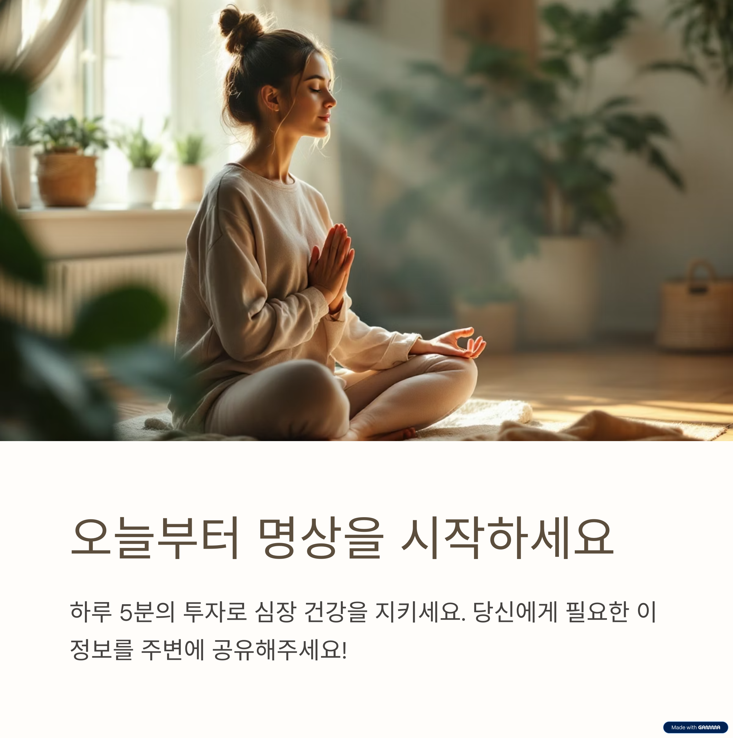 지금 이 글을 읽고 있는 당신, 혹시 명상이 어렵게만 느껴지셨나요? 저도 그랬어요. '시간 없어', '효과 있겠어?' 수많은 의심 속에서 시작했지만, 돌아보니 명상은 제 삶을 진짜 조용히, 하지만 깊이 바꿔놓았더라고요. 특히 심장 건강이 걱정된다면, 하루 10분의 명상이 그 어떤 약보다 든든한 버팀목이 될 수 있어요.