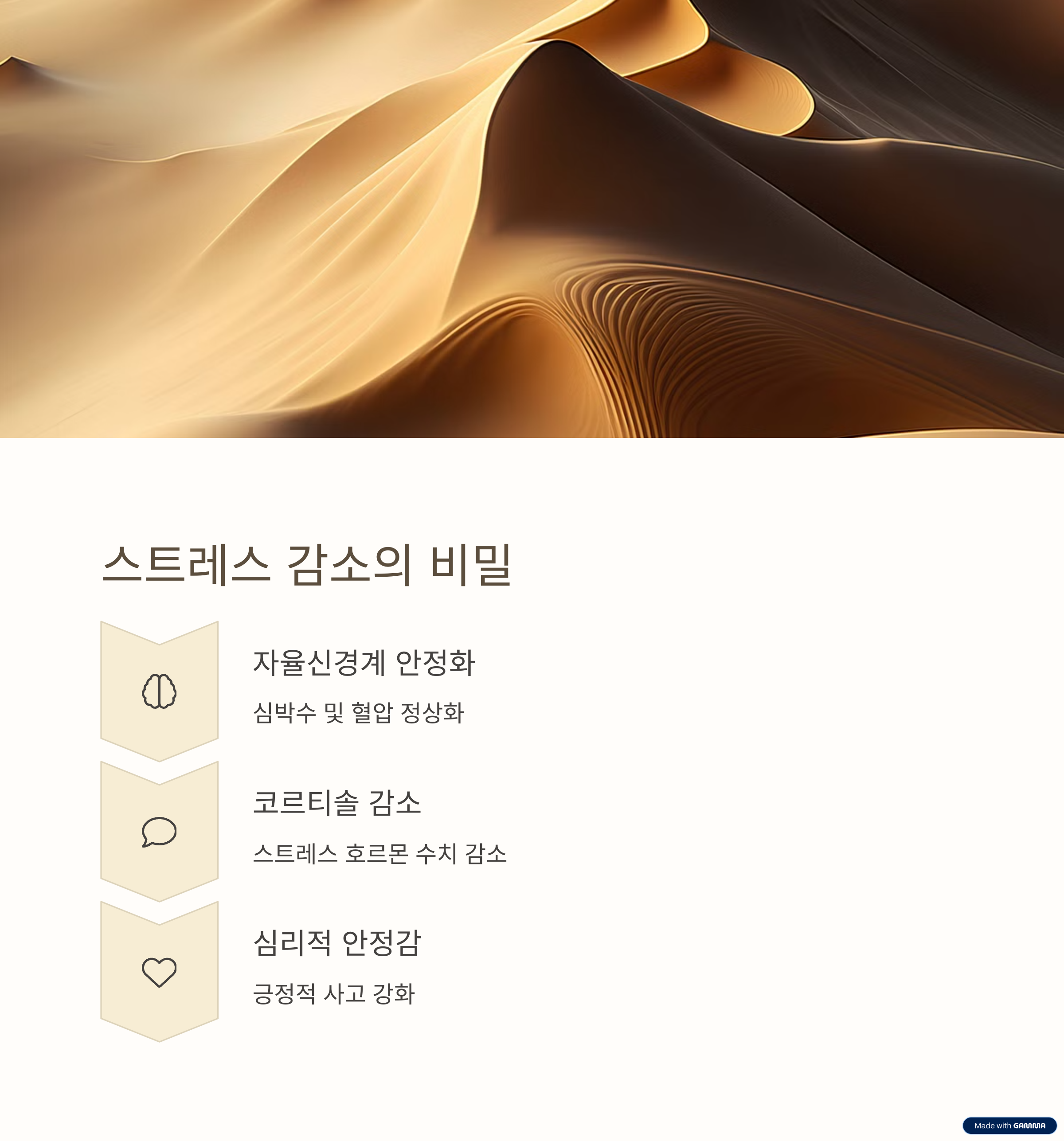 그 결과, 혈압은 안정되고 심장박동도 규칙을 되찾고, 심지어 근육 이완과 신진대사에도 긍정적인 변화가 생긴대요. 몸 전체가 조용히 ‘편안한 모드’로 전환되는 느낌, 아마 해보신 분들은 아실 거예요.